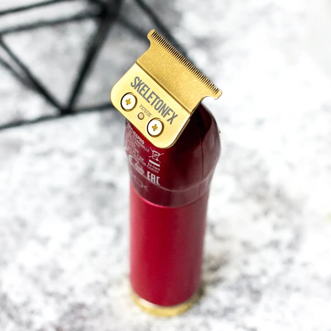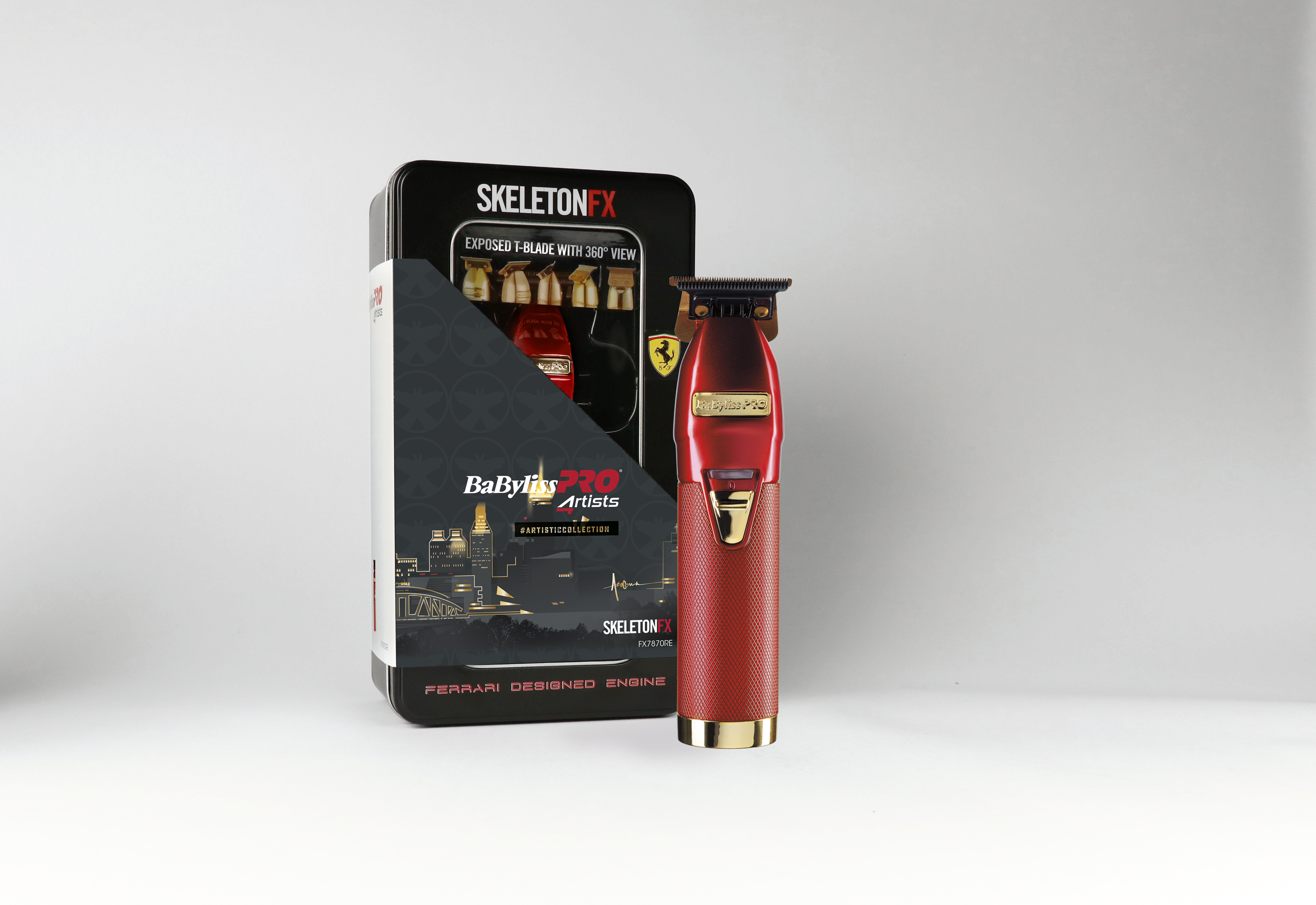 BaByliss PRO FX7870RE Skeleton Red FX Trimmer – профессиональный триммер для создания максимально точных окантовок. Специальная форма корпуса «Skeleton» обеспечивает максимальный обзор на все 360 градусов, независимо от положения триммера. В то время как Т-образный широкий ножевой блок гарантирует качественный срез.