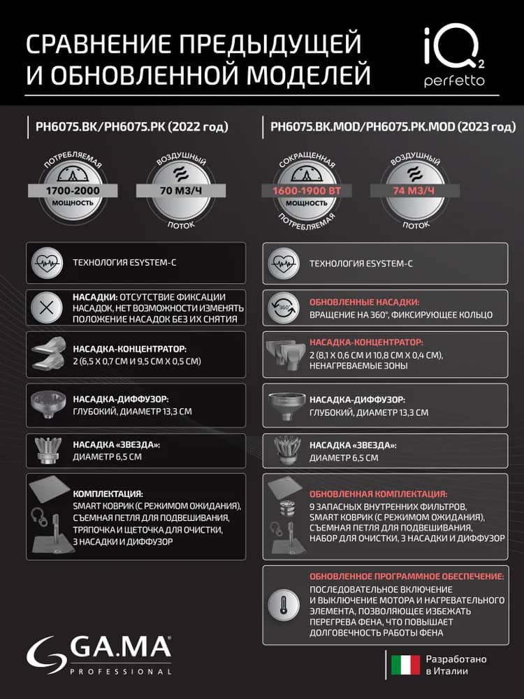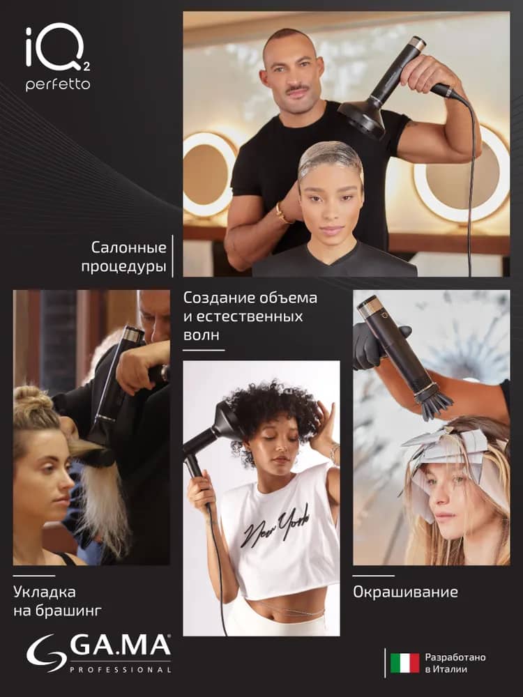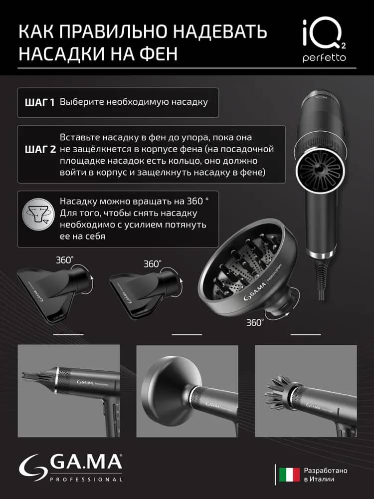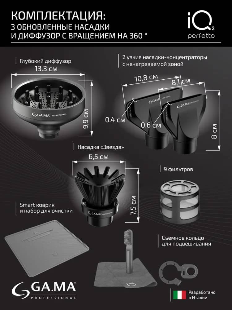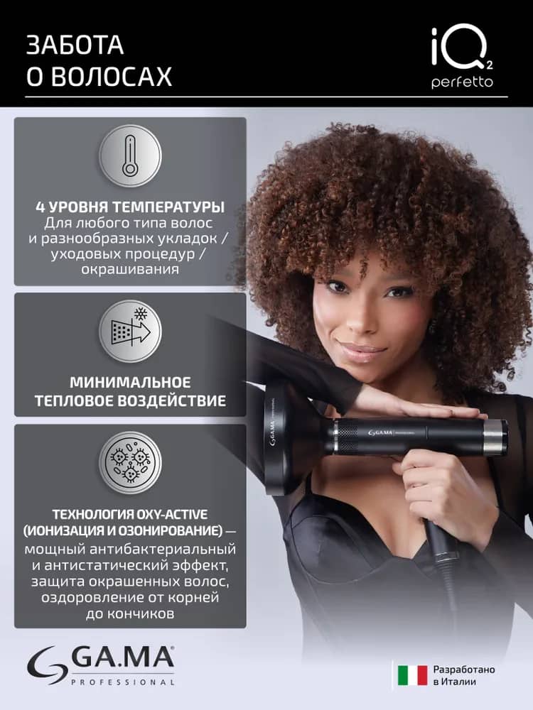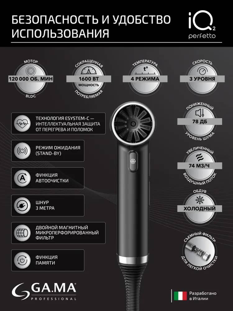 Фен для волос профессиональный GA.MA IQ2 PERFETTO (OXY-ACTIVE) BLACK PH6075.BK.MOD (1600)