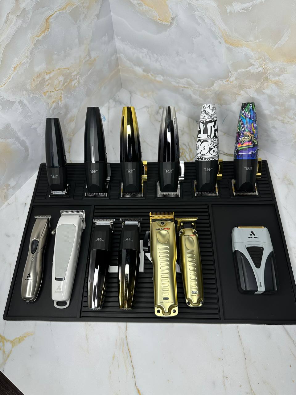 Термостойкий силиконовый коврик от бренда jRL Professional с 6 мощными магнитами для крепления машинок и триммеров. Термостойкость до 360 градусов.