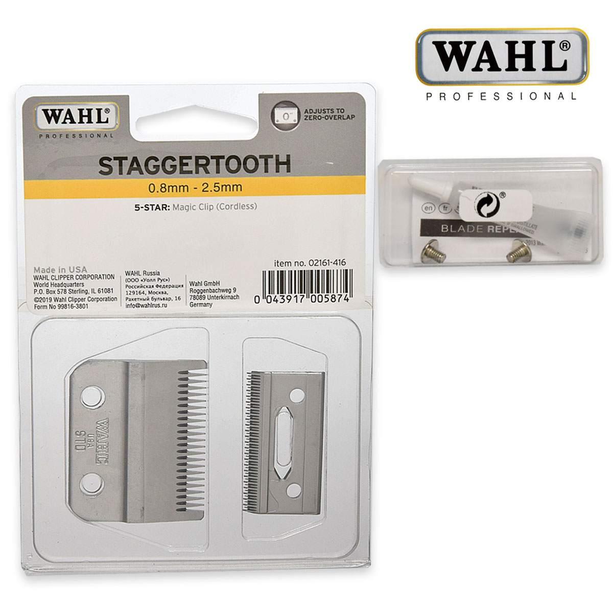 Сменный цельнометаллический нож Wahl Stagger Tooth Blade 2161-416 разработан для беспроводных машинок Wahl серии 5 Star — Magic Clip Cordless. Заточка лезвий выполнена по технологиям Stagger-Tooth и Crunch. Stagger Tooth — это двойной ряд зубцов, который срезает волос, не оставляя «антенн», делает однородные переходы. Геометрия Crunch дает дает слышимый характерный «хруст» волос, повышая контроль над срезом.