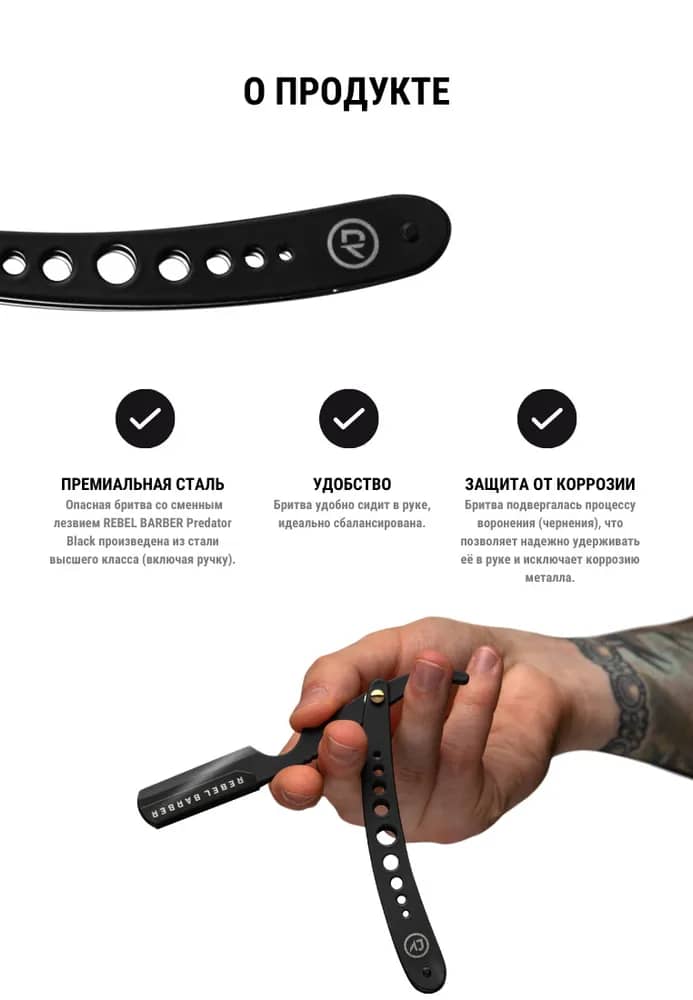 Бритва шавет REBEL BARBER Predator Black RB016