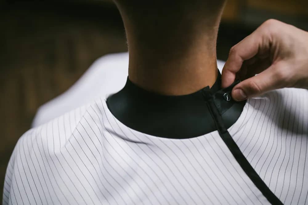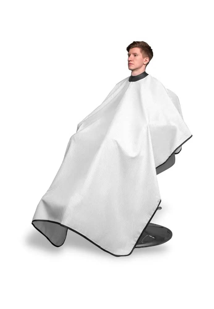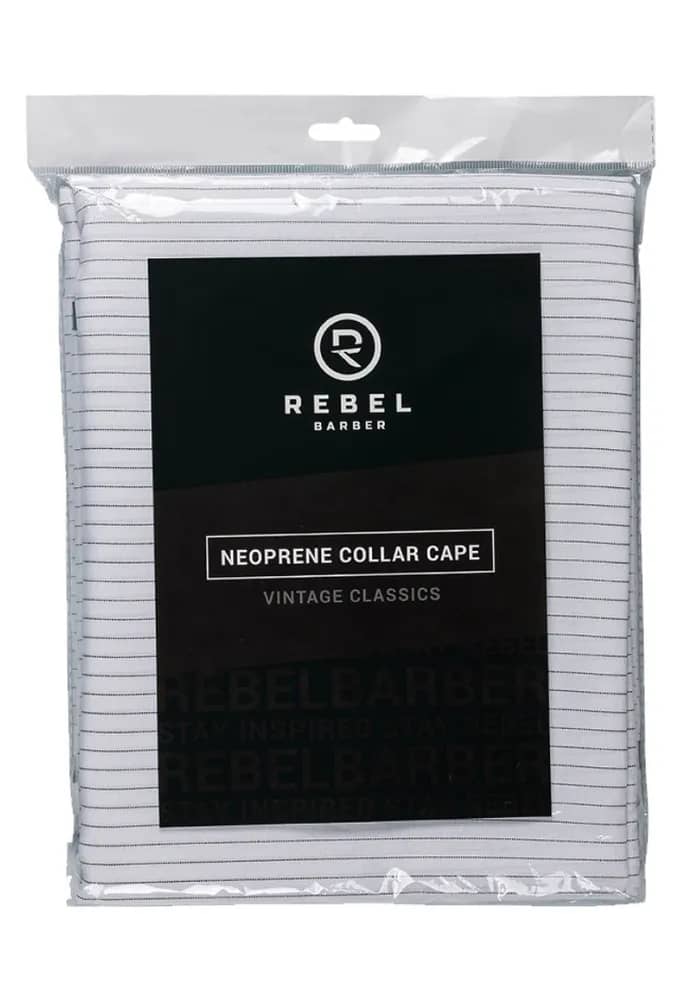 REBEL BARBER Vintage Classics — белый пеньюар с неопреновым воротником для парикмахеров и барберов. Отличается от прочих специальной защитой шеи, которая выполнена из высококачественного неопрена.